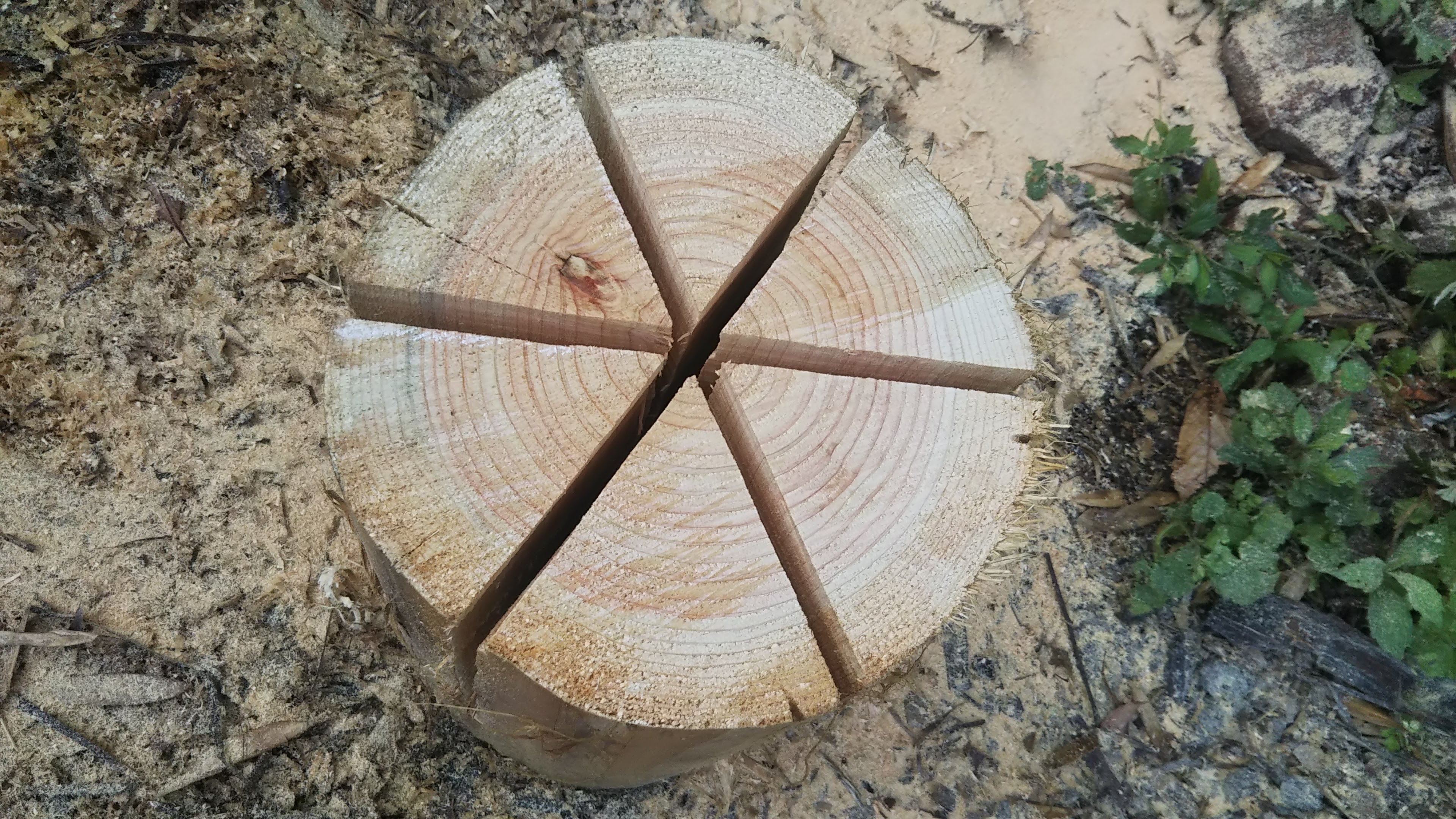 【丸太の皮むき】ナタ1本でむく方法と、機械をつかってむく方法。